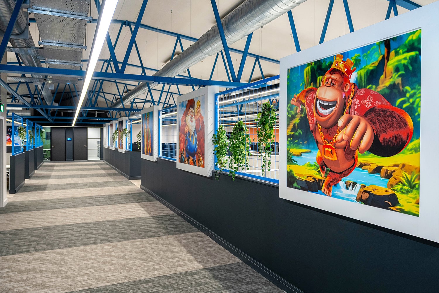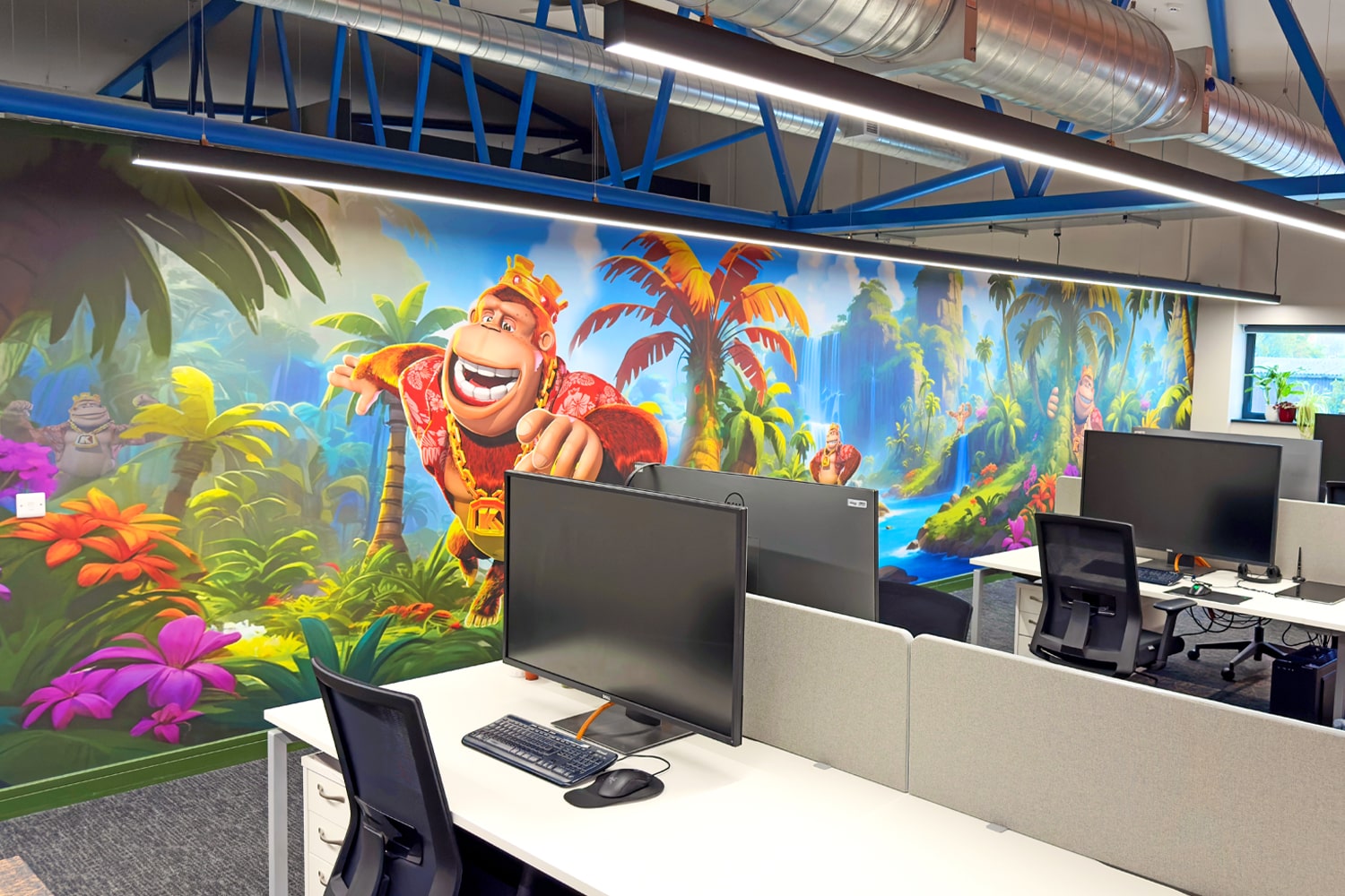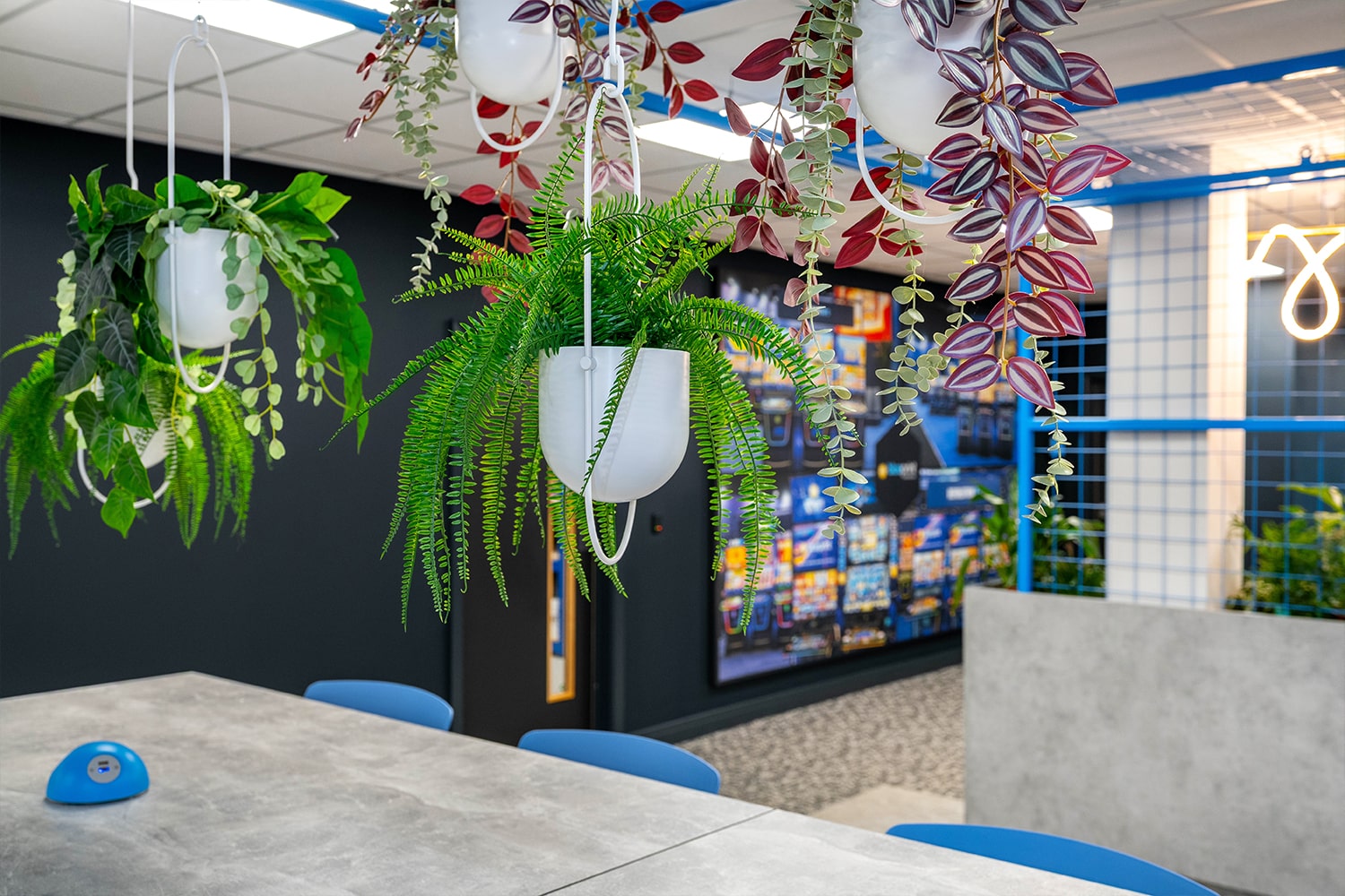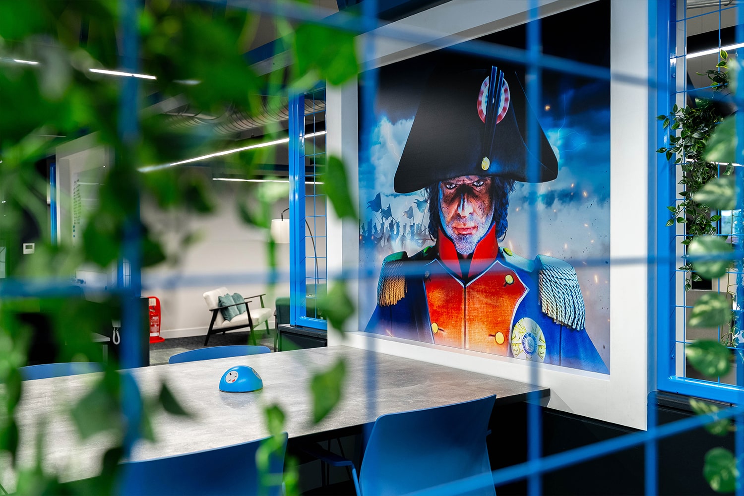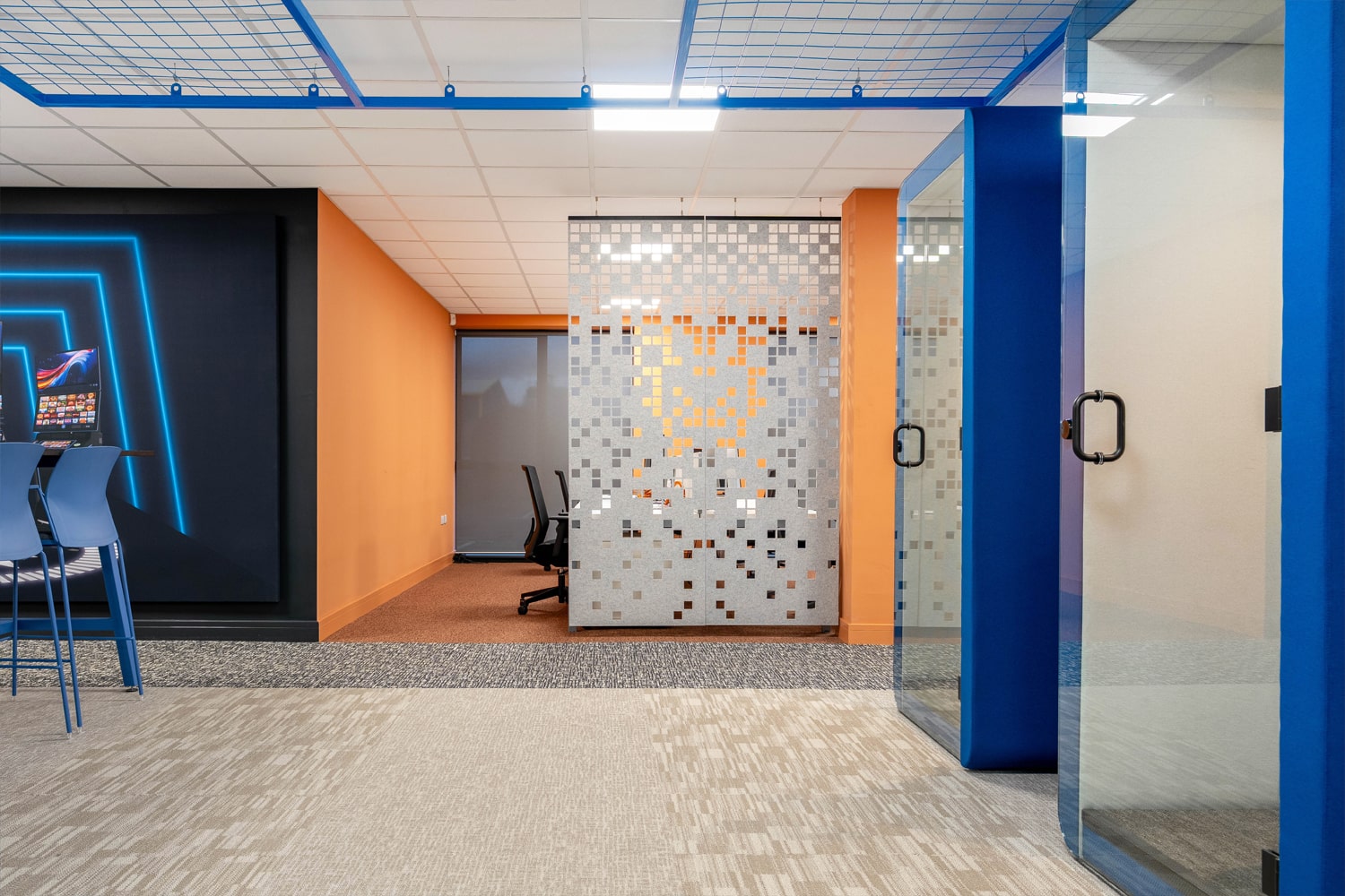 Bold logos, vibrant brand colours and custom graphics tell the story of growth and success, creating a workspace that’s inspirational and unmistakably connected to the company’s vision.