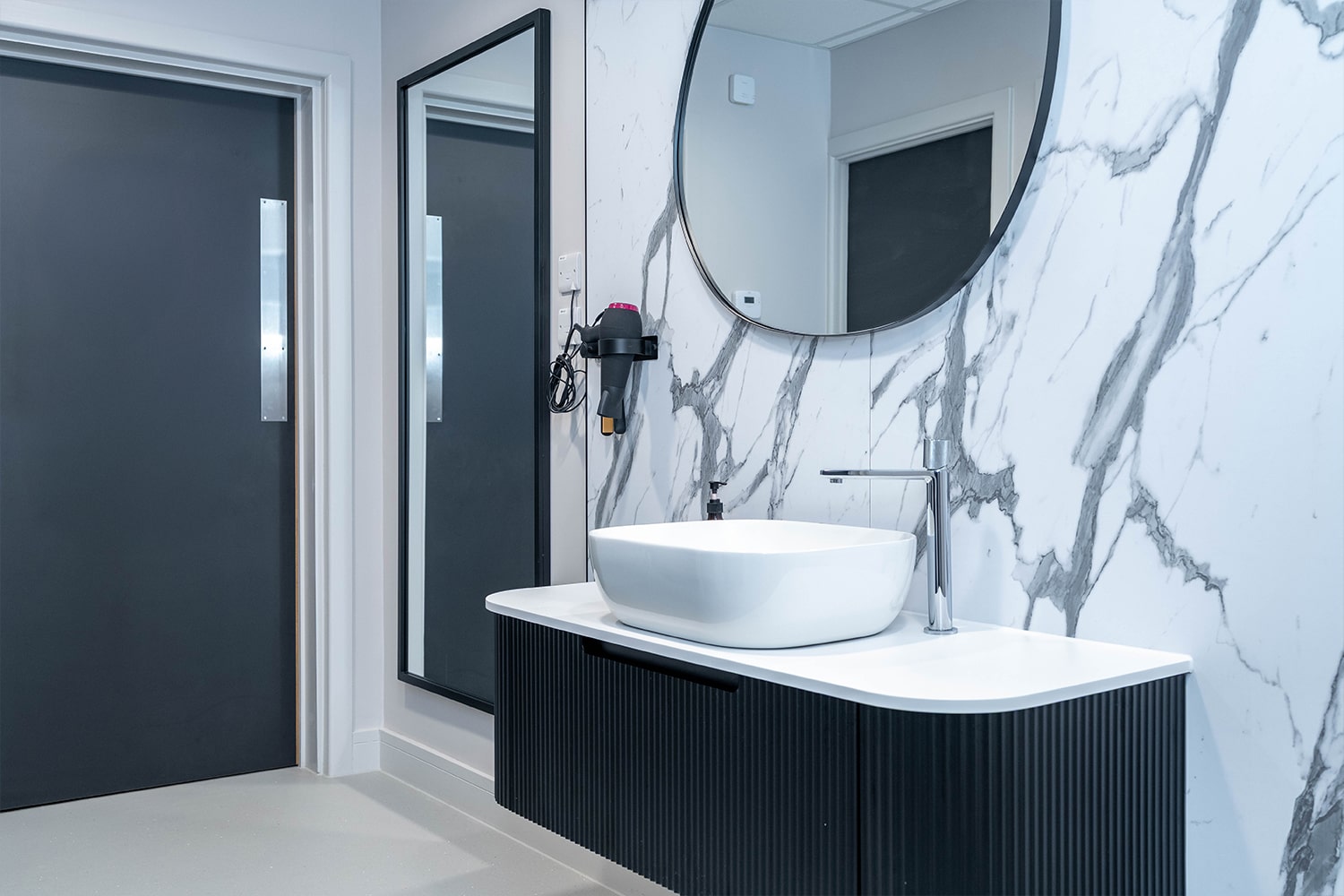 Furniture choices were guided by both design intent and budget, combining style, comfort, and value. A brand-led colour scheme ties the interiors together, celebrating the client’s identity throughout and complementing the architectural detailing that gives the space its distinctive character.