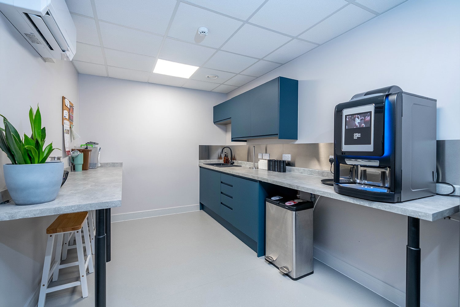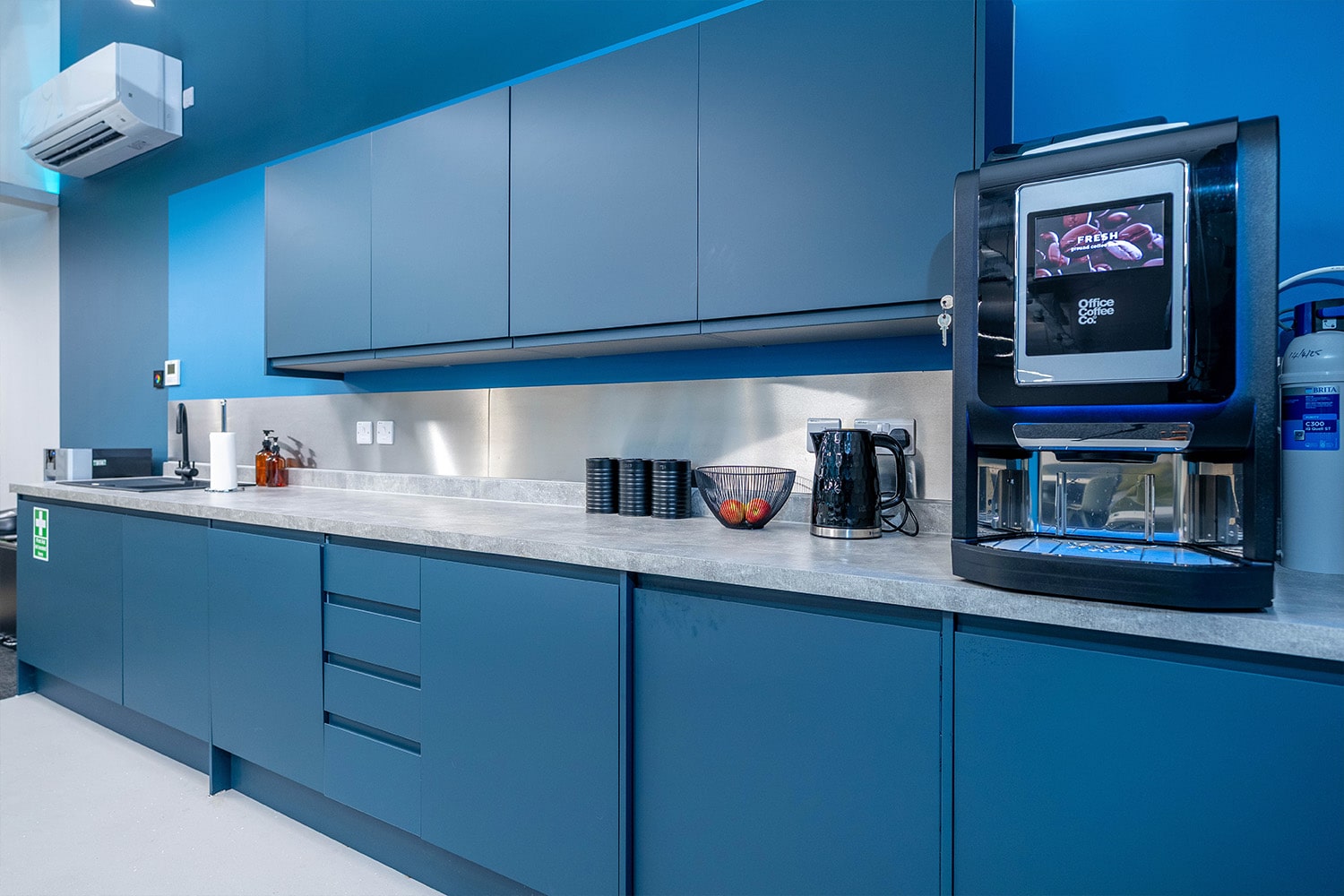 As part of the canteen and breakout installation, we designed and installed a fully equipped commercial kitchen and stores area – tailored to allow the chefs to express their culinary talents to provide balanced breakfast and lunchtime meals to the staff, promoting staff wellbeing and encouraging brand unity. This included layout planning, equipment sourcing and installation, utility upgrades, and compliance with all health, safety, and building regulations.